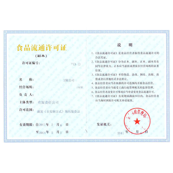 您當前的位置 : 首頁>許可證>食品流通許可證